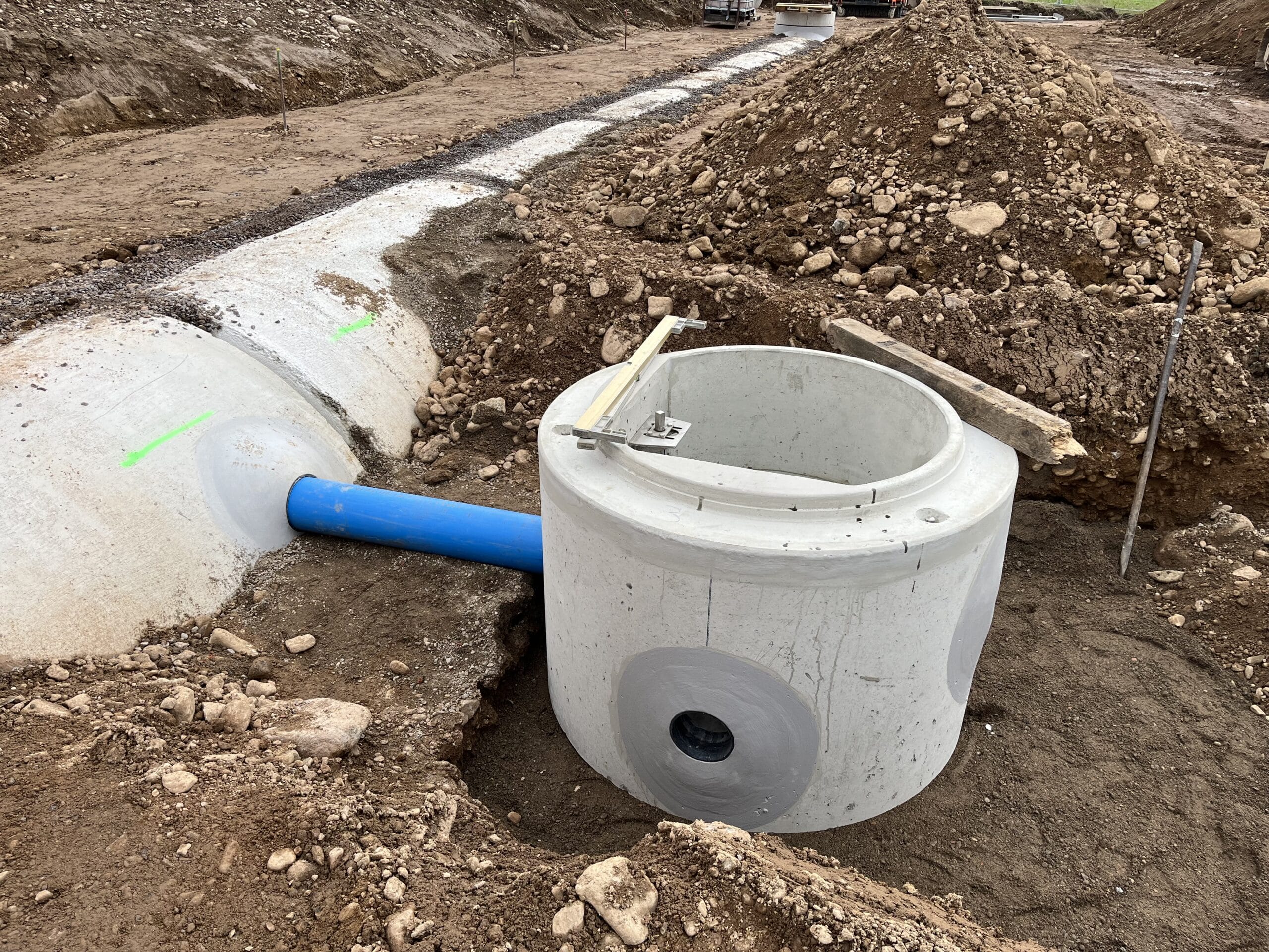 Ein weiteres Plus ist die Nachhaltigkeit. Die Rohre wurden in Baden-Württemberg von der Firma Röser GmbH hergestellt – kurze Transportwege und regionale Fertigung sorgen für eine gute Ökobilanz. Darüber hinaus sind die eingesetzten Stahlbetonrohre zu 100 % recyclingfähig und tragen somit aktiv zur Ressourcenschonung bei.