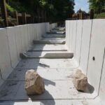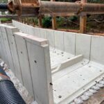 Eingebaut wurden die 10 Tonnen schweren Profile mit einem Autokran. Diese Lösung bot gegenüber einem schweren Bagger logistische Vorteile für das Entladen des anliefernden LKW und das Einheben der Elemente in den vorbereiteten Graben.